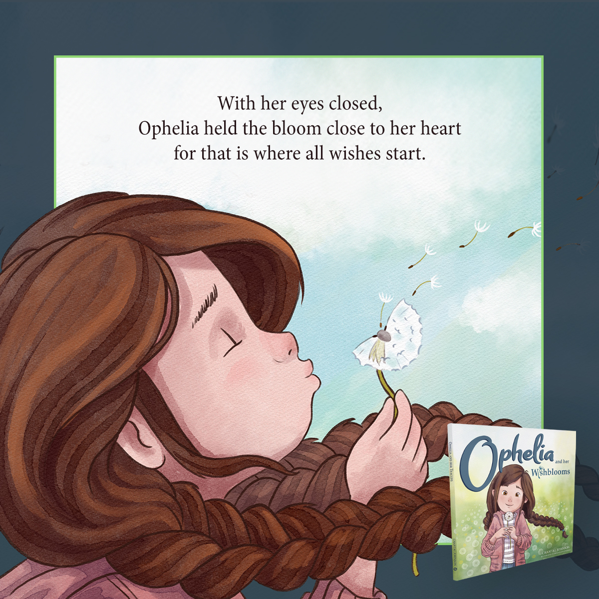 Join Ophelia and Her Wishblooms. She is sure to captivate your heart as you discover that true wishes are filled with love and kindness and always a little fun!